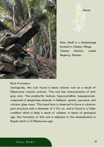 Pleistocene volcanic activity. This rock has characteristics of dark