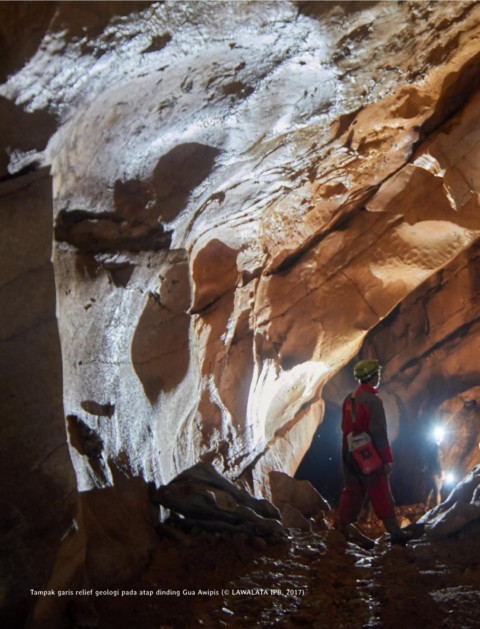Tampak garis relief geologi pada atap dinding Gua Awipis (© LAWALATA IPB, 2017)