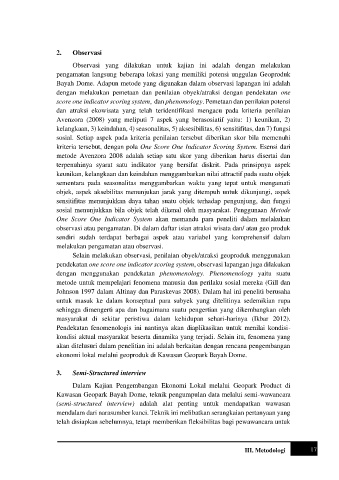 Selain melakukan observasi, penilaian obyek/atraksi geoproduk menggunakan