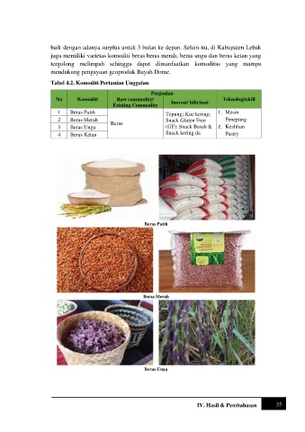 Tabel 4.2. Komoditi Pertanian Unggulan