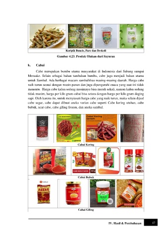 bubuk, acar cabe, cabe giling frozen, dan aneka sambal.