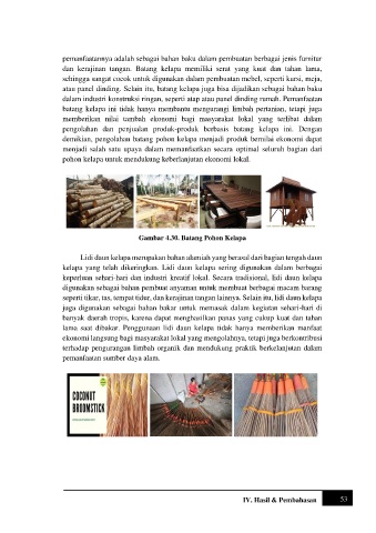 dan kerajinan tangan. Batang kelapa memiliki serat yang kuat dan tahan lama,