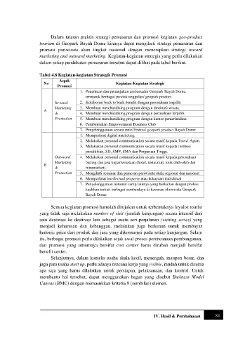 Tabel 4.8 Kegiatan-kegiatan Strategis Promosi