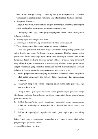 3. Toleransi masyarakat dalam menerima pembangunan pariwisata.