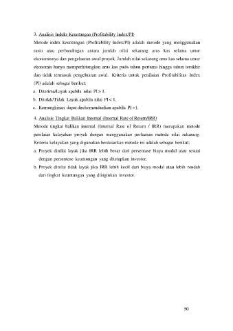 b. Ditolak/Tidak Layak apabila nilai PI < 1.