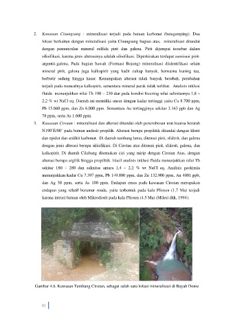 lokasi berkaitan dengan mineralisasi yaitu Cisungsang bagian atas, mineralisasi ditandai