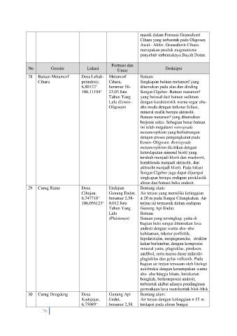 106,11194° 23,03 Juta Sungai Cigeber. Batuan metamorf