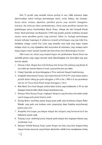 rujukan utama pemilihan geosite yang potensial. Selain itu, berbagai pertimbangan