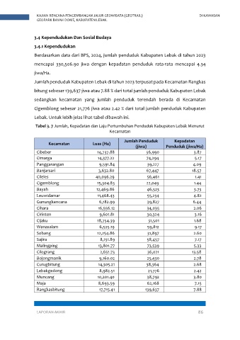 Tabel 3. 7 Jumlah, Kepadatan dan Laju Pertumbuhan Penduduk Kabupaten Lebak Menurut