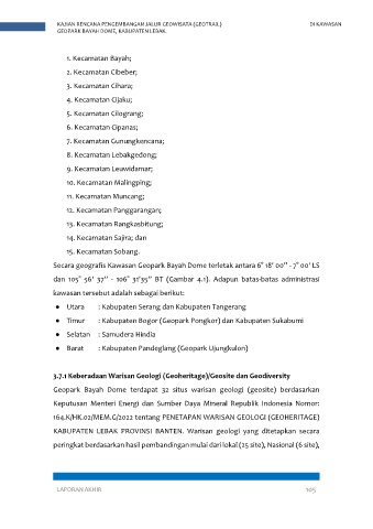 ● Timur : Kabupaten Bogor (Geopark Pongkor) dan Kabupaten Sukabumi