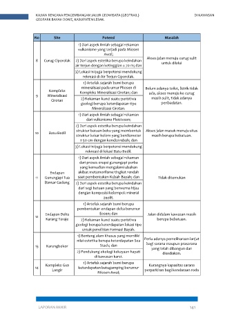 11 Gunungapi Tua saat pembentukan Kubah Bayah; dan Tidak ditemukan