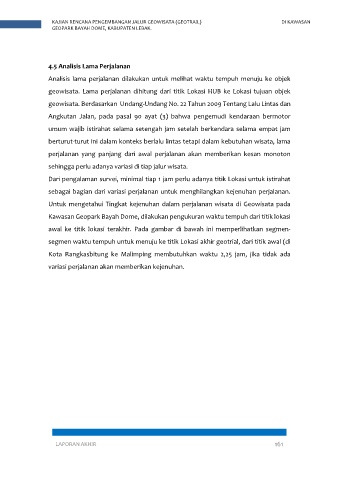 geowisata. Lama perjalanan dihitung dari titik Lokasi HUB ke Lokasi tujuan objek