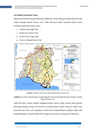 Gambar 4. 11 Peta Geotrail pada Geopark Bayah Dome berdasarkan Rencana Induk Geopark