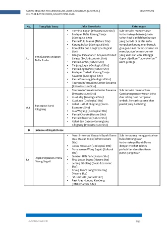 No. Tema/Sub Tema Jalur Geowisata Keterangan