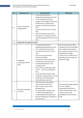 No. Tema/Sub Tema Jalur Geowisata Keterangan