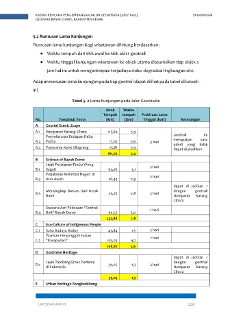 Adapun rumusan lama kunjungan pada tiap geotrail dapat dilihat pada tabel di bawah