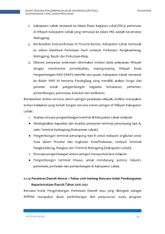1. Arahan rencana pengembangan terminal di Kabupaten Lebak meliputi: