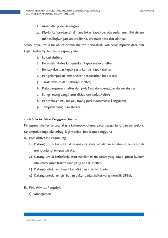 6. Data pengguna shelter dan pola kegiatan pengguna dalam shelter;