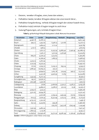 Tabel 3. 4 Morfologi Wilayah Kabupaten Lebak Menurut Kecamatan