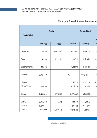 Tabel 3. 6 Daerah Rawan Bencana Kabupaten Lebak Menurut Kecamatan