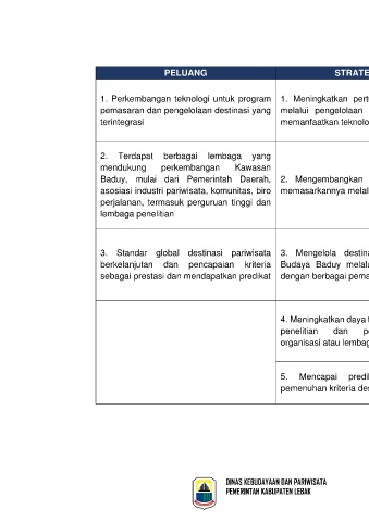 1. Perkembangan teknologi untuk program 1. Meningkatkan pertumbuhan wisatawan 1. Menerapkan standar pariwisata