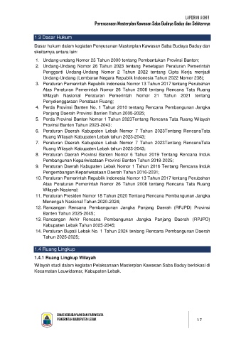Dasar hukum dalam kegiatan Penyusunan Masterplan Kawasan Saba Budaya Baduy dan
