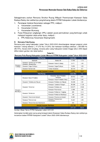 Rencana pola ruang Kabupaten Lebak Tahun 2023-2043 dikembangkan dengan proporsi untuk