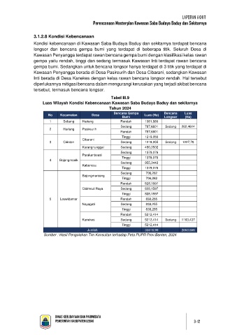 Luas Wilayah Kondisi Kebencanaan Kawasan Saba Budaya Baduy dan sekitarnya