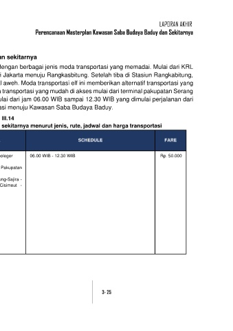 3.1.4.8 Moda Transportasi Menuju Kawasan Saba Budaya Baduy dan sekitarnya