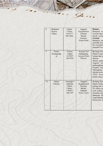 Cibobos mulyaan Konglomerat Pantai berpasir putih dengan fragmen-fragmen pasir kasar dan (Kusumabrata,
