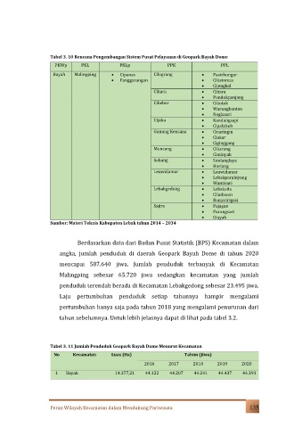 Tabel 3. 10 Rencana Pengembangan Sistem Pusat Pelayanan di Geopark Bayah Dome