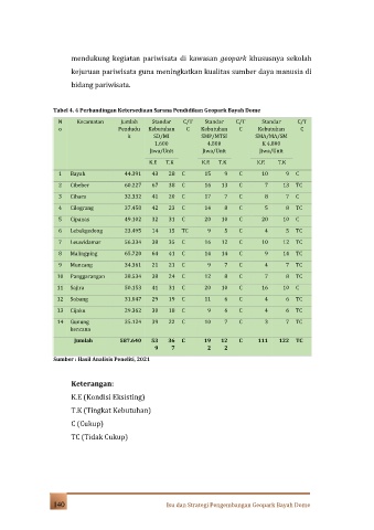 Tabel 4. 4 Perbandingan Ketersediaan Sarana Pendidikan Geopark Bayah Dome