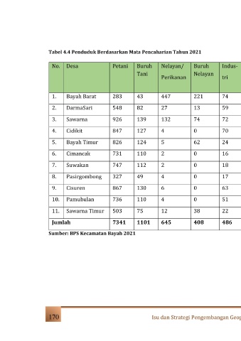 Tabel 4.4 Penduduk Berdasarkan Mata Pencaharian Tahun 2021