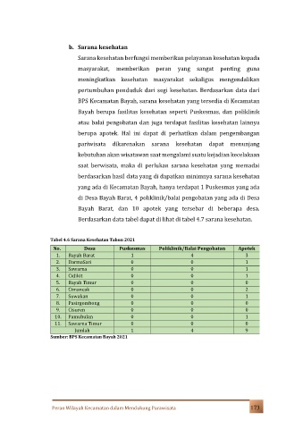 Tabel 4.6 Sarana Kesehatan Tahun 2021