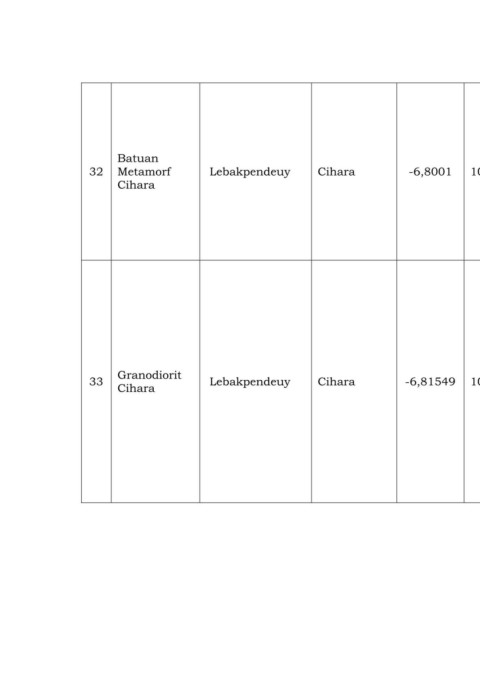 32 Metamorf Lebakpendeuy Cihara -6,8001 106,1133 batuan dan mafik berupa aktinolit yang dapat