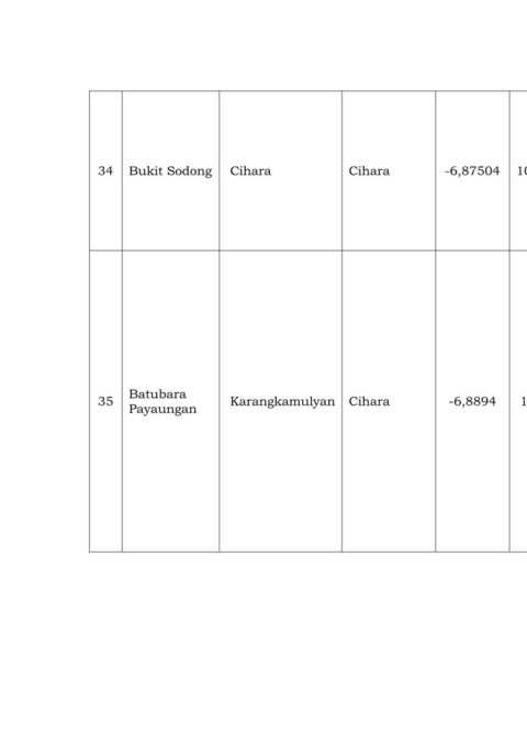 34 Bukit Sodong Cihara Cihara -6,87504 106,0979 batuan dan bawahnya. Tepat di depan persawahan,