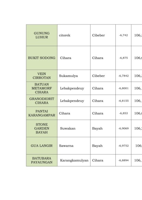 BUKIT SODONG Cihara Cihara -6,875 106,098 Internasional konservasi,
