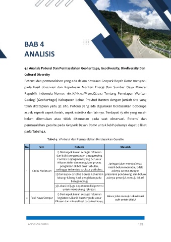 Tabel 4. 1 Potensi dan Permasalahan Berdasarkan Geosite