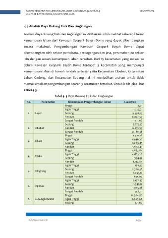 kemampuan lahan dari Kawasan Geopark Bayah Dome yang dapat dikembangkan