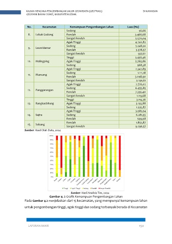 Pada Gambar 4.2 menjelaskan dari 15 kecamatan, yang mempunyai kemampuan lahan