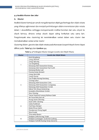 Tabel 4. 4 Pembagian Kluster dengan Geosite dan Objek Wisata