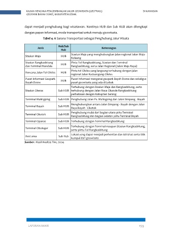 Tabel 4. 6 Sarana Transportasi sebagai Penghubung Jalur Wisata