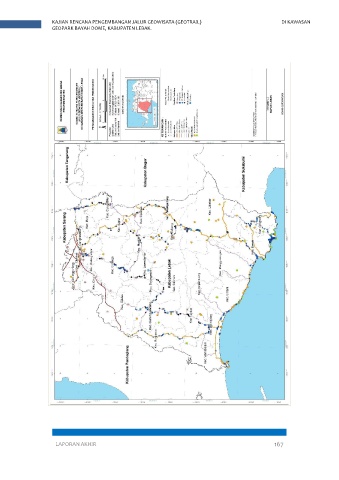 KAJIAN RENCANA PENGEMBANGAN JALUR GEOWISATA (GEOTRAIL) DI KAWASAN GEOPARK BAYAH DOME, KABUPATEN LEBAK. Gambar 4. 10 Peta Analisis Fasilitas Pendukung LAPORAN AKHIR 167