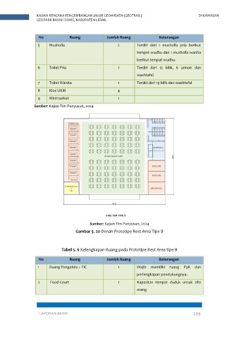 Tabel 5. 6 Kelengkapan Ruang pada Prototipe Rest Area tipe B