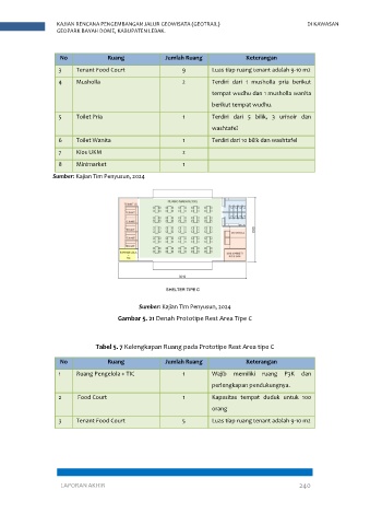 Tabel 5. 7 Kelengkapan Ruang pada Prototipe Rest Area tipe C