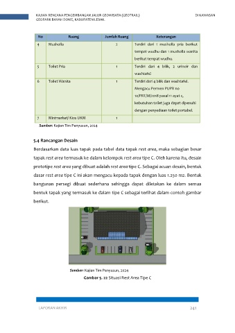 tapak rest area termasuk ke dalam kelompok rest area tipe C. Oleh karena itu, desain