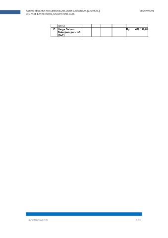 KAJIAN RENCANA PENGEMBANGAN JALUR GEOWISATA (GEOTRAIL) DI KAWASAN GEOPARK BAYAH DOME, KABUPATEN LEBAK. (15%) F Harga Satuan Rp 482.196,61 Pekerjaan per - m3 (D+E) LAPORAN AKHIR 282