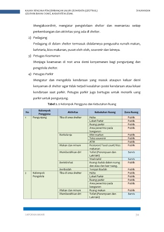Tabel 2. 2 Kelompok Pengguna dan Kebutuhan Ruang