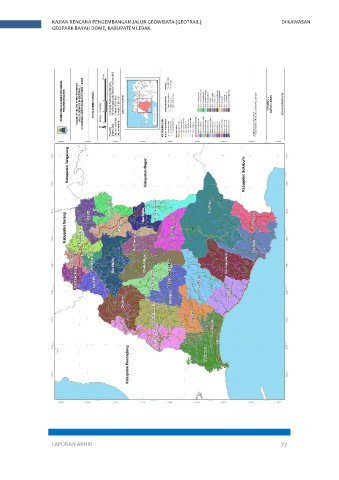 KAJIAN RENCANA PENGEMBANGAN JALUR GEOWISATA (GEOTRAIL) DI KAWASAN GEOPARK BAYAH DOME, KABUPATEN LEBAK. Gambar 3. 1 Peta Administrasi LAPORAN AKHIR 77