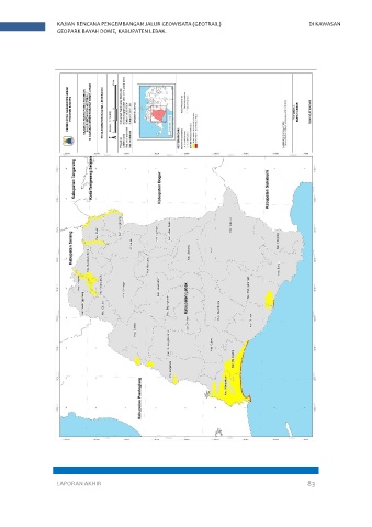 KAJIAN RENCANA PENGEMBANGAN JALUR GEOWISATA (GEOTRAIL) DI KAWASAN GEOPARK BAYAH DOME, KABUPATEN LEBAK. Gambar 3. 8 Peta Rawan Bencana Likuefaksi LAPORAN AKHIR 83
